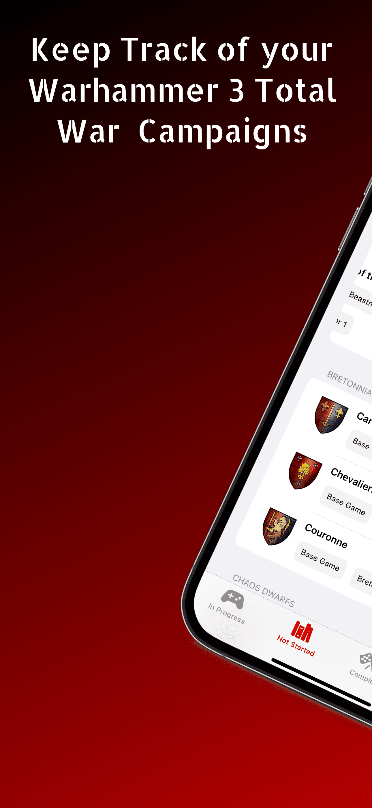 Unleash your inner Khorne and track your Warhammer 3 Total War Campaigns like a true Blood God with the WH3 Tracker app! This unofficial companion app is your strategic ally on the battlefield, helping you conquer the Old World one campaign at a time. Whether you pledge allegiance to Khorne or any other faction, our app is here to keep your war plans organized and your victories drenched in the blood of your enemies.